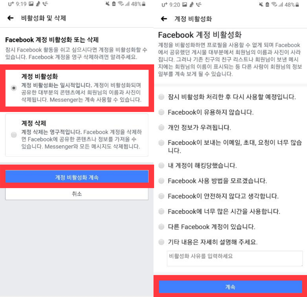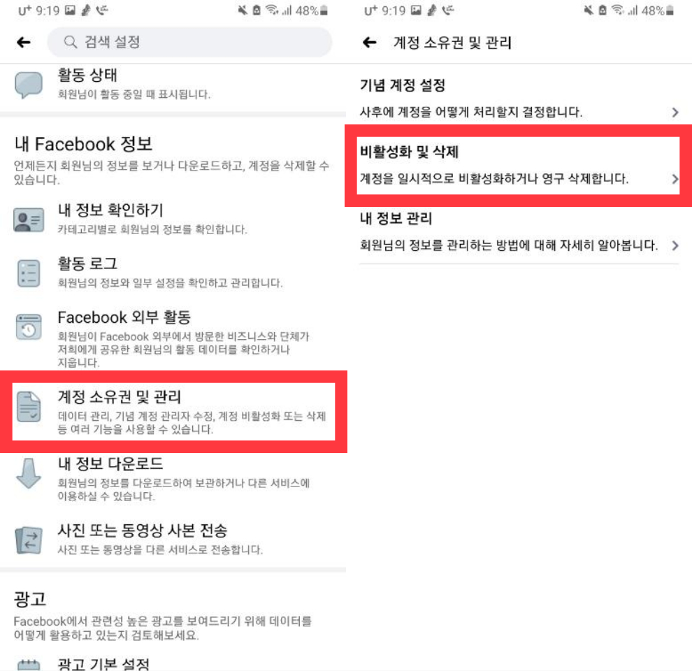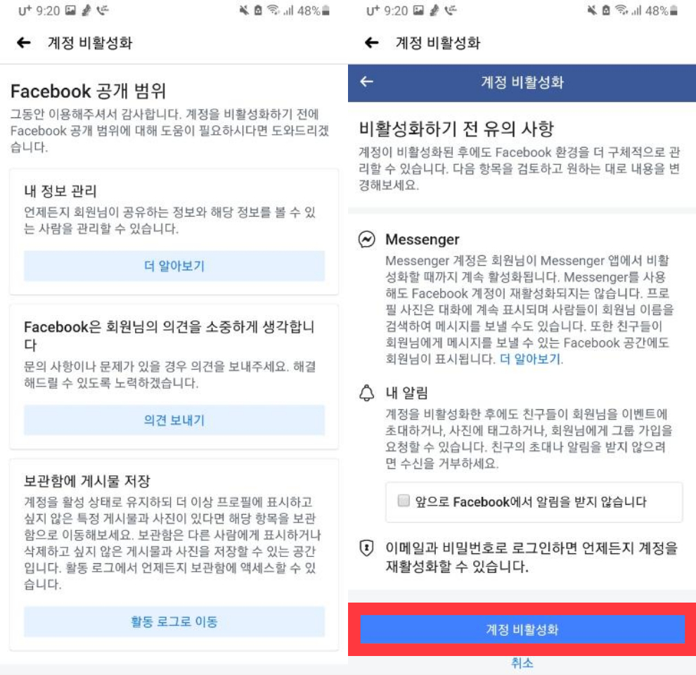 ≪페이스북 비활성화 및 해제 방법≫