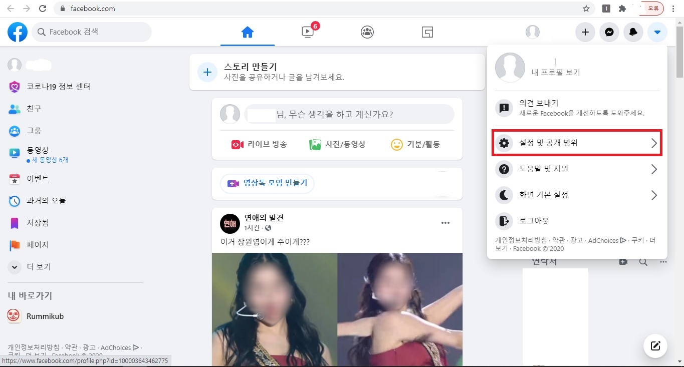 8. Facebook 공개 범위에서 정보 관리에 관한 내용들을 변경 및 확인하시고