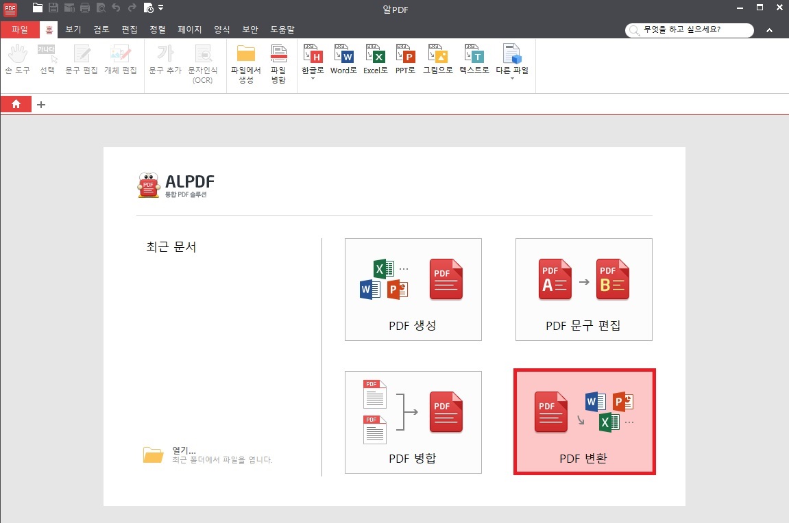 첫번째, 알 PDF를 실행한 화면에서 PDF 변환을 클릭합니다.