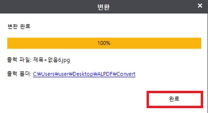 이렇게 하시면 알 PDF를 이용한 PDF JPG 변환이 끝이 났습니다. 출력 폴더를 클릭하시면 폴더 창이 하나가 뜨는데, 거기서 파일을 확인하실 수가 있습니다.