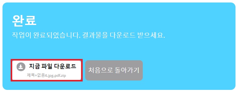 이렇게 하시면 사이트를 통한 PDF JPG 변환 완료입니다. 사이트로 하시면 프로그램을 설치하지 않고도 사용 가능하니 좀 더 편리할 수 있겠습니다.
