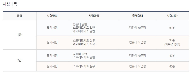컴퓨터활용능력 2급 시험 과목은 필기시험에는 컴퓨터 일반, 스프레드시트 일반. 실기시험에는 스프레드시트 실무가 있습니다.