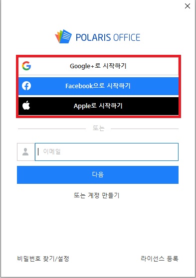 설치 후 로그인을 합니다. 로그인 후에 폴라리스 오피스 구글 계정 엑세스에 대하여 허용을 클릭합니다.
