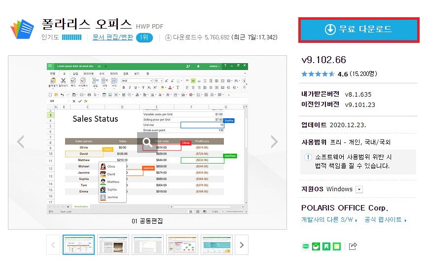엑셀 무료 다운로드 2가지 방법 중 두 번째로 소개해드릴 엑셀 무료 프로그램은 바로 폴라리스 오피스입니다. 다들 들어보셨는지 모르겠지만 저는 한동안 이 프로그램을 잘 사용했었고 모바일 어플 버전으로도 나와있습니다.