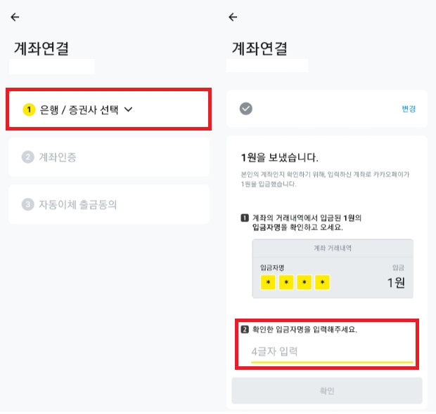 그다음 계좌 인증을 위 사진에 나온 대로 진행합니다.