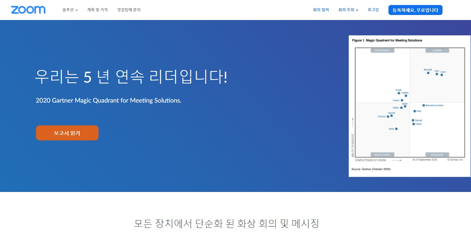 위 사진이 zoom 홈페이지 화면입니다. 스크롤을 아래로 내려줍니다.