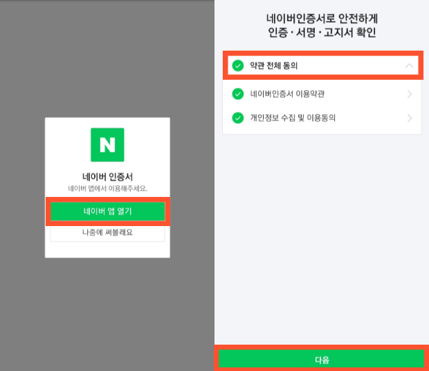 이후 인증서 발급 방법은 네이버 인증서 발급 방법과 동일합니다.
