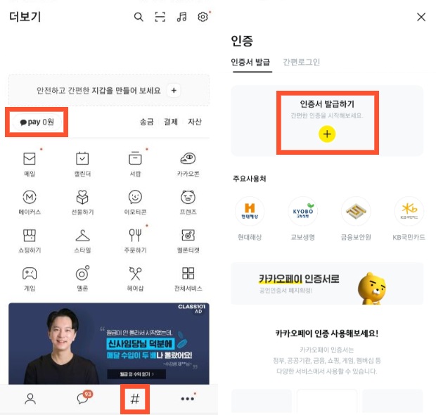 공동인증서 발급 방법 (네이버 카카오톡)