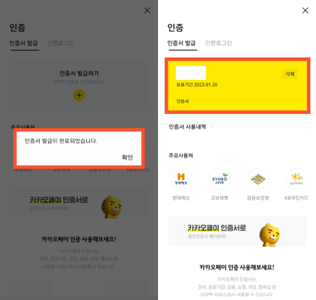 카카오톡 공동인증서