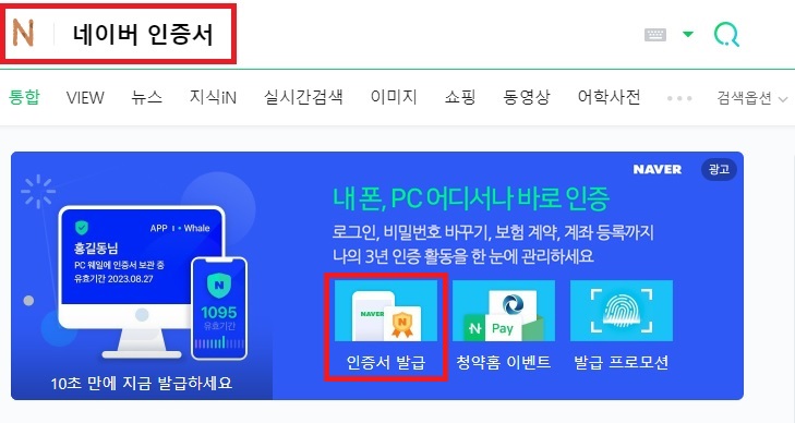 1. 검색창에 네이버 인증서를 검색합니다.