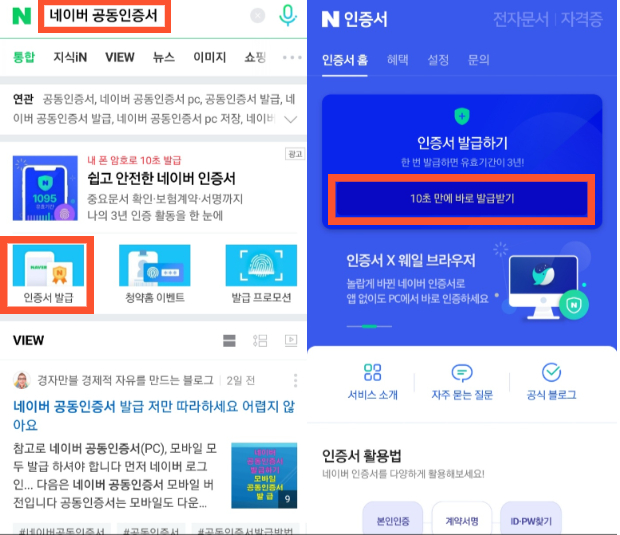 네이버 인증서 발급방법