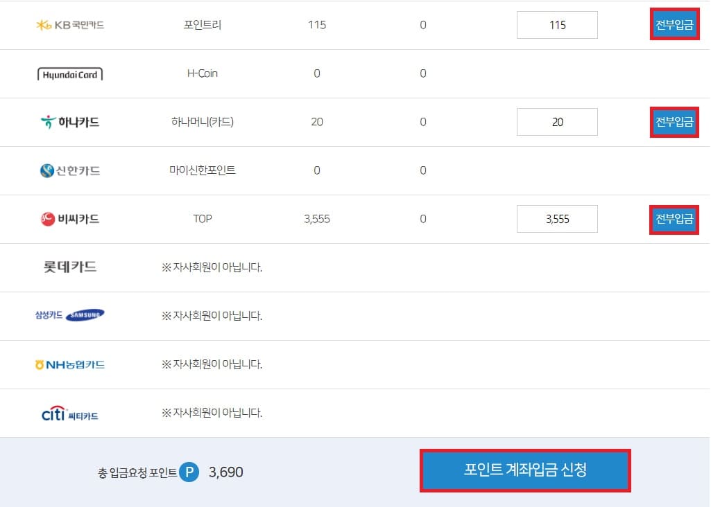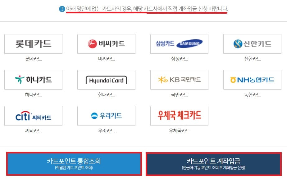 카드포인트 통합조회 방법