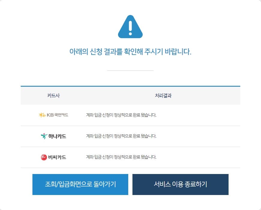 해당되는 카드사 외에는 개별적으로 조회해야 하니 참고하시기 바랍니다.