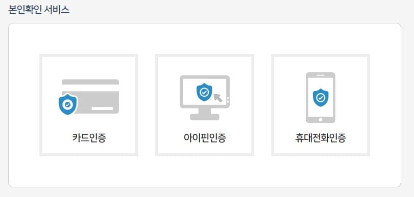 4. 본인인증을 진행합니다. 세가지 유형 중 한 가지를 선택하셔서 진행하시면 됩니다.