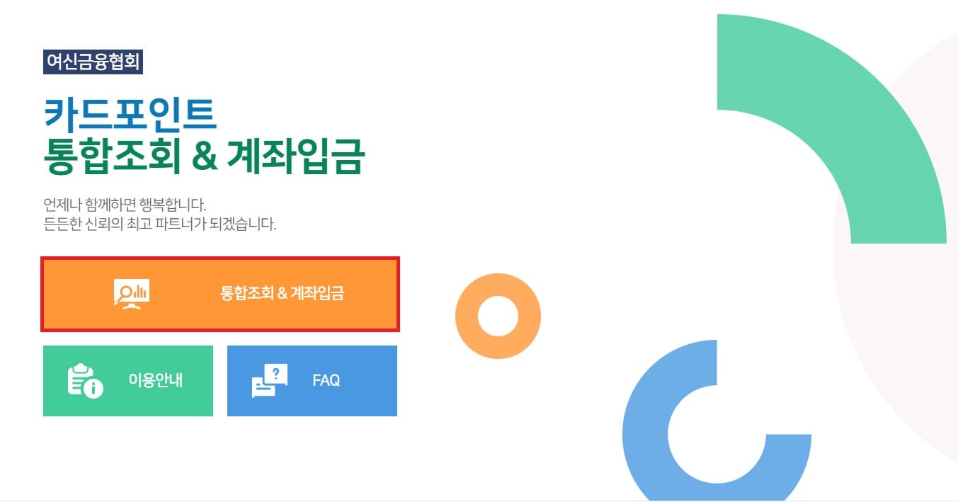 그래서 지난 1월 5일 금융위원회는 여신금융협회의 '카드포인트 통합조회·계좌이체' 앱·홈페이지 등으로 모든 카드사의 포인트를 조회해 한 번에 지정된 계좌로 이체·출금할 수 있는 서비스를 개시하였습니다.