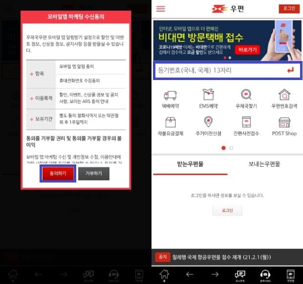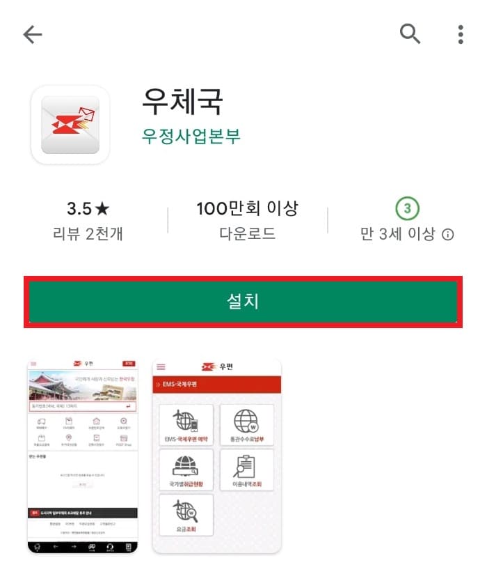 1. 플레이스토어에서 우체국을 검색하여 설치하고 어플을 실행합니다.