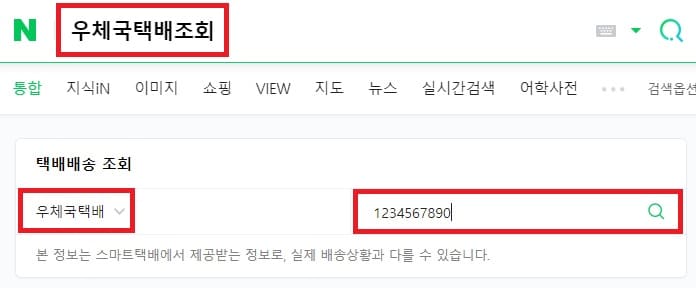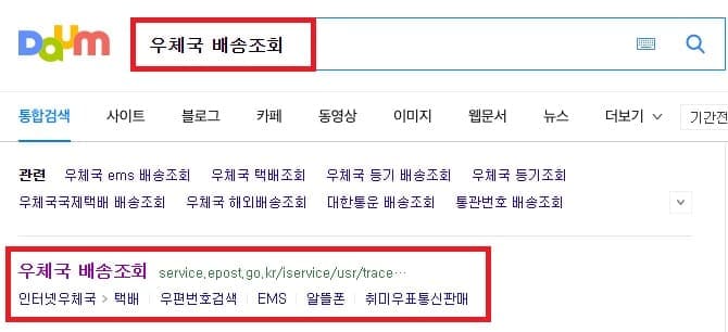 1. 포털 검색창에 우체국 배송조회나 우체국 택배조회를 검색합니다.