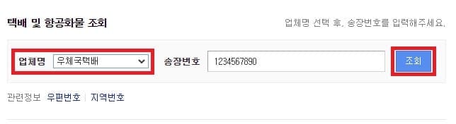 2. 택배사에서 우체국택배를 입력하여 택배 배송조회를 합니다.