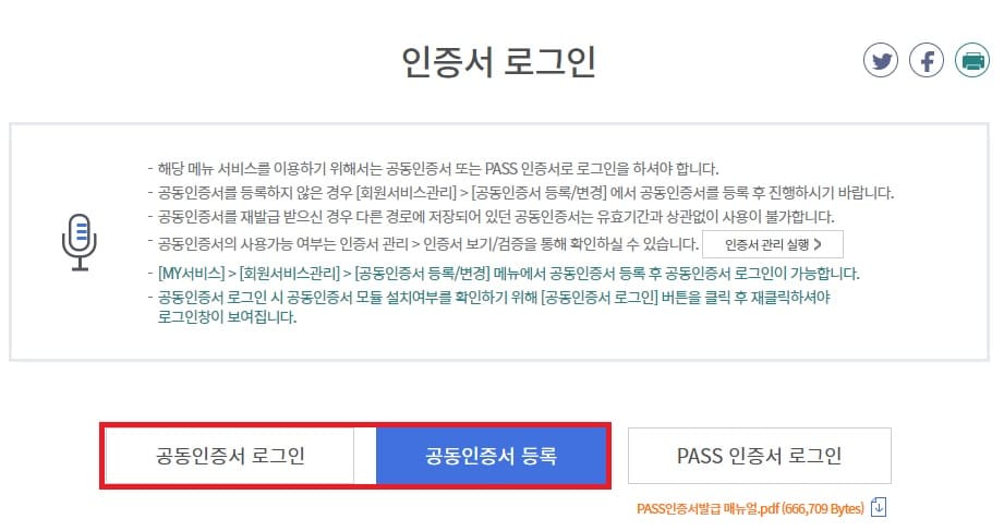 4. 공인인증서로 로그인합니다. 아직 등록하지 않으셨다면 공동 인증서 등록하신 후에 로그인하시면 되겠습니다.