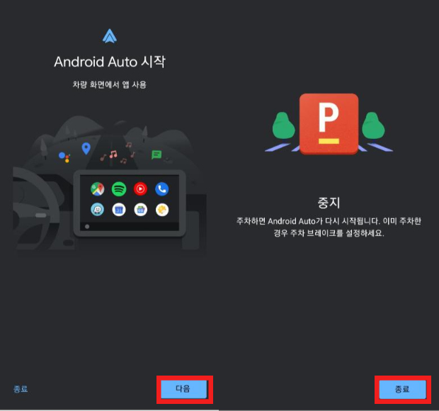 이때, 반드시 주차된 상태여야 안드로이드 오토가 시작됩니다. 기어봉을 P에 두고 실행하시기 바랍니다.
