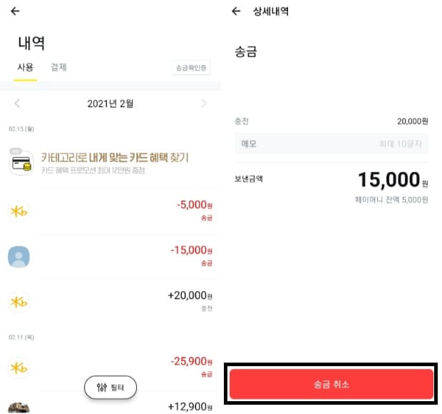 카카오페이 송금취소