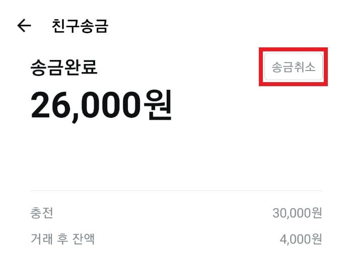4. 송금 취소 버튼을 클릭합니다.