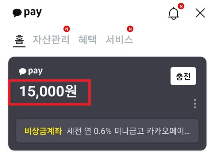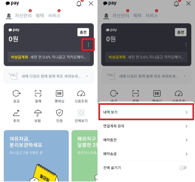 1. 카카오페이에 들어와서 점 세 개를 클릭합니다.