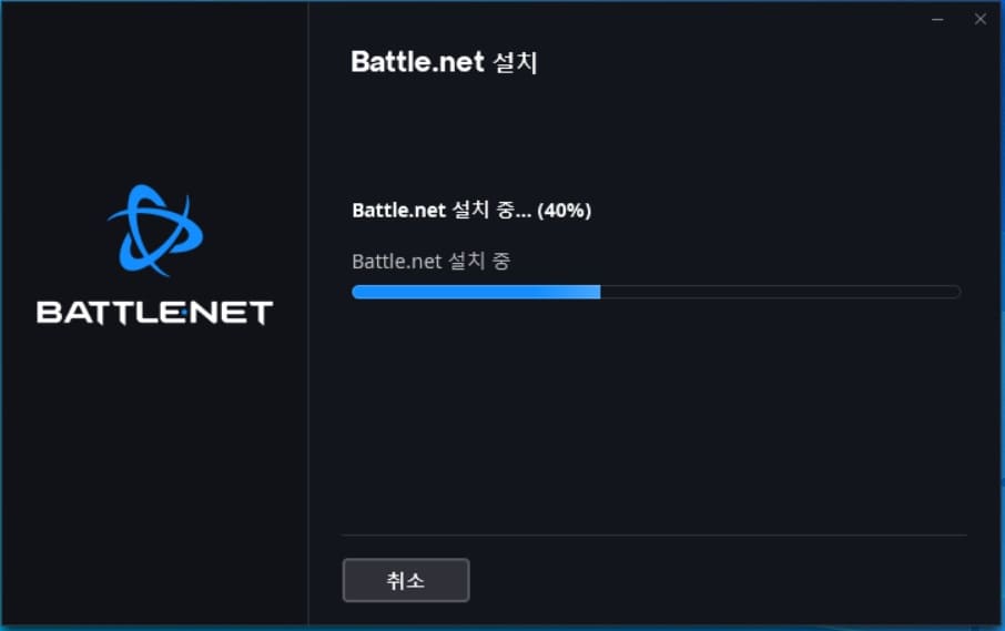 배틀넷이 설치 중입니다. 설치는 컴퓨터 사양이나 인터넷 속도에 따라 다르나, 파일 용량이 작아서 보통 1~2분이면 설치가 완료됩니다.