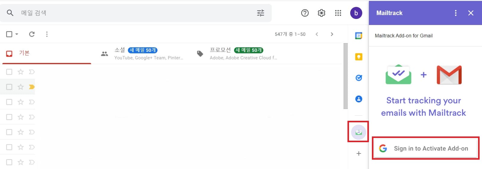 6. mailtrack 을 설치하고 구글 아이디로 로그인하여 계정 액세스를 허용합니다.