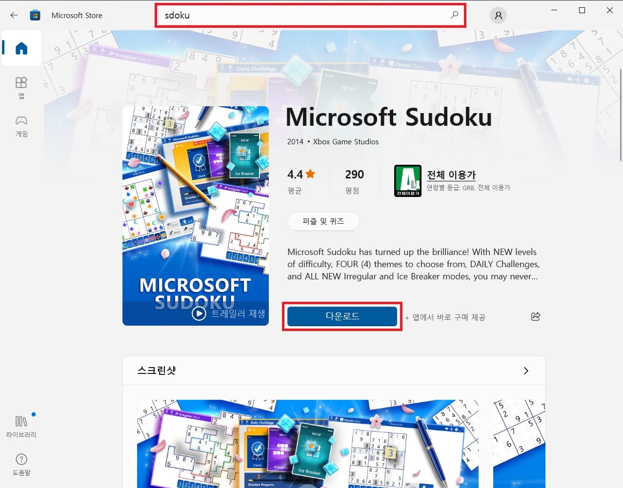 PC에서는 Microsoft Store에서 Sdoku를 검색하셔서 게임을 다운로드하시면 됩니다.
