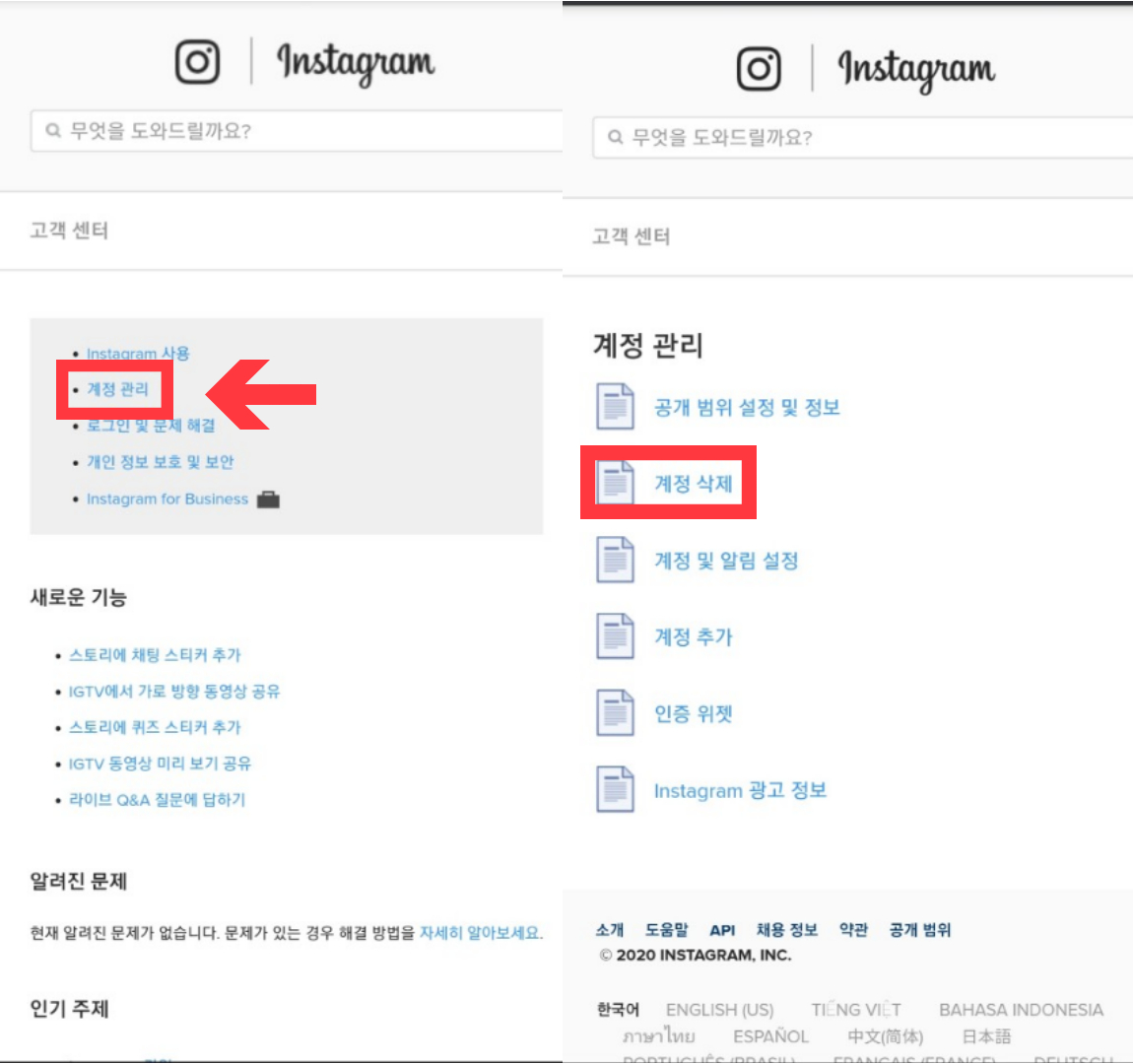 인스타그램 계정 탈퇴, 삭제하는법!