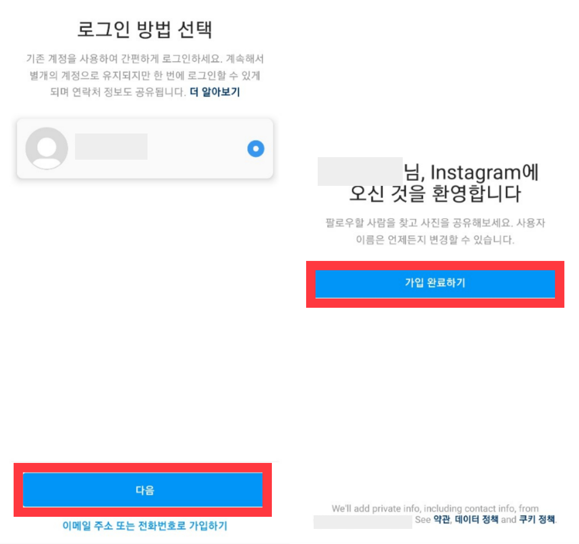 이렇게 인스타 새로운 계정이 만들어졌습니다~ 다음으로 추가적인 사항들 몇 가지만 하시면 완료됩니다.