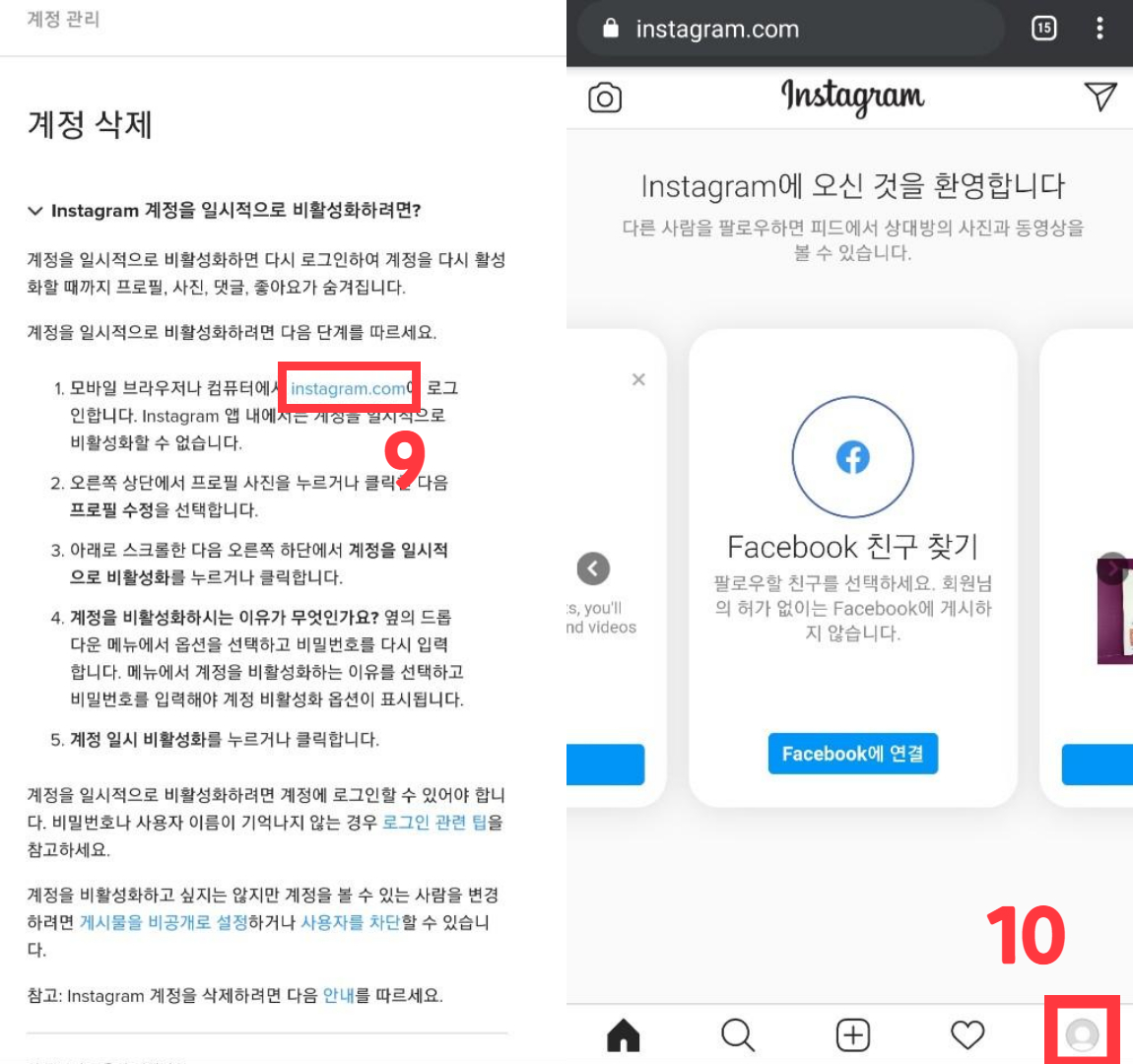 《인스타그램 계정 비활성화 및 해제》