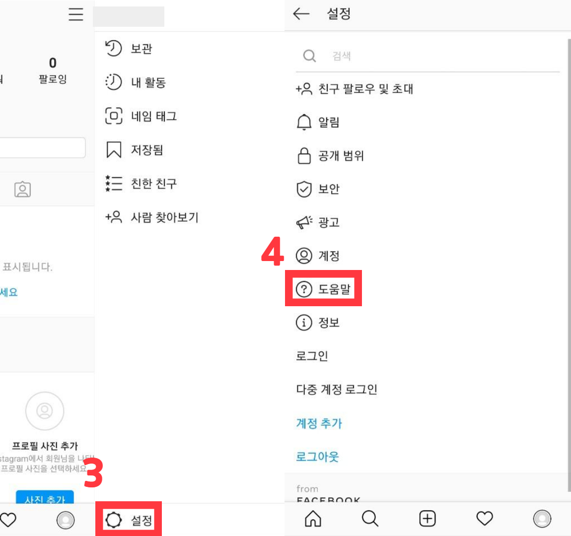 어플에 들어왔으면 먼저 인스타그램 계정 비활성화부터 알아보겠습니다! 사진과 설명들을 잘 따라와주세요~